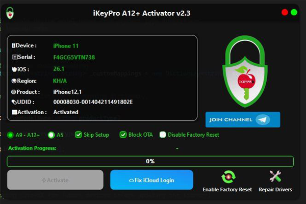 iKeyPro A12+ Activator Hello Bypass No Signal 6s-17 Pro Max